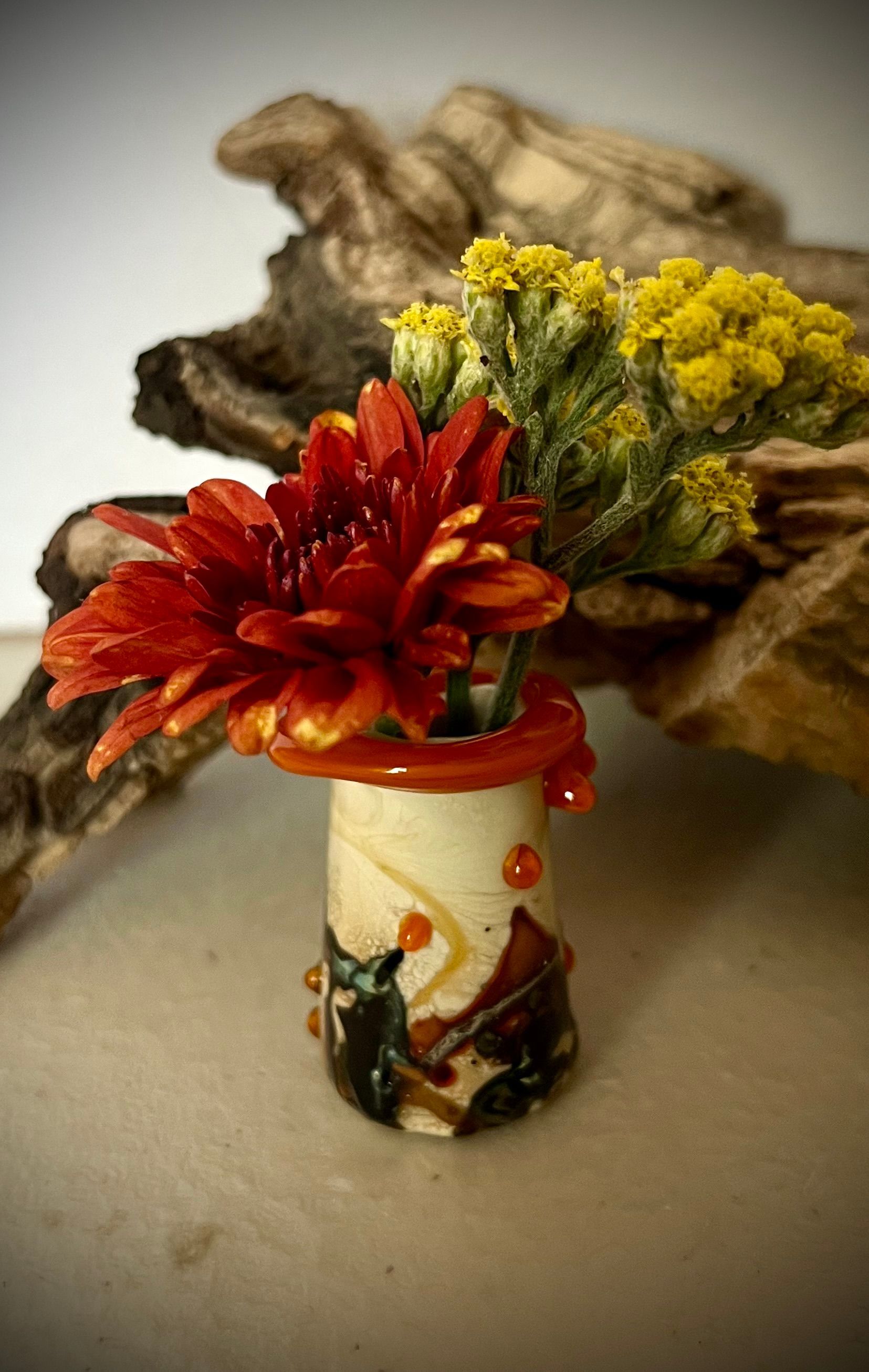 Lately, I've been inspired by beautiful art vases I've found in the wild. This gorgeous vase inspired me to make flowers using light and dark topaz and a mystery silver glass. ~Wendy Velasquez~