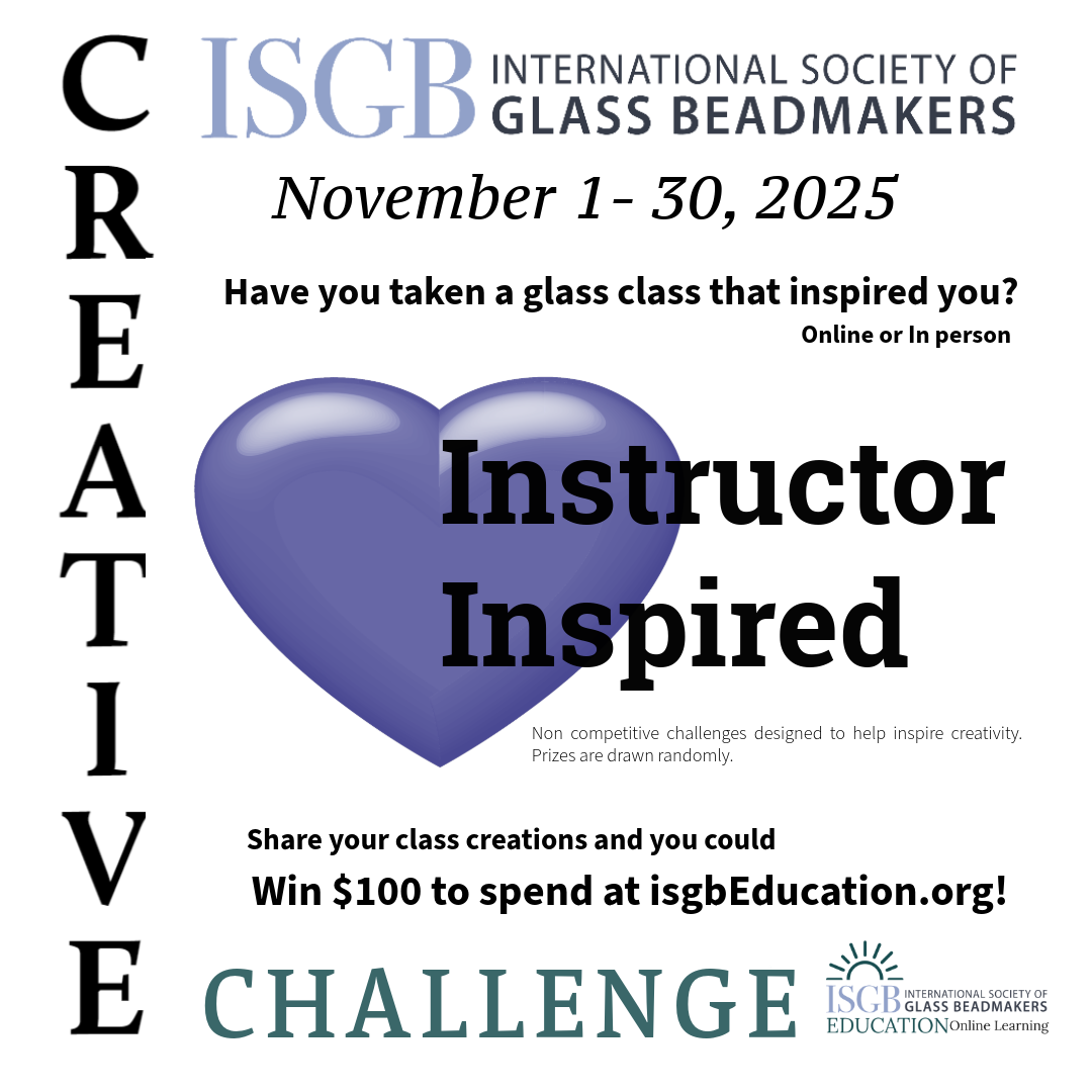 A chance viewing of a CBS Sunday morning show featuring Beads of Courage sent me down the lampwork path in 2010. I still love glass and also Beads of Courage. Most of my beads are created thinking of what a young person might enjoy, but I do also create things for myself and others. For this challenge I melted a color I had in my collection but had never tried until now! ~Eileen Robbins~
