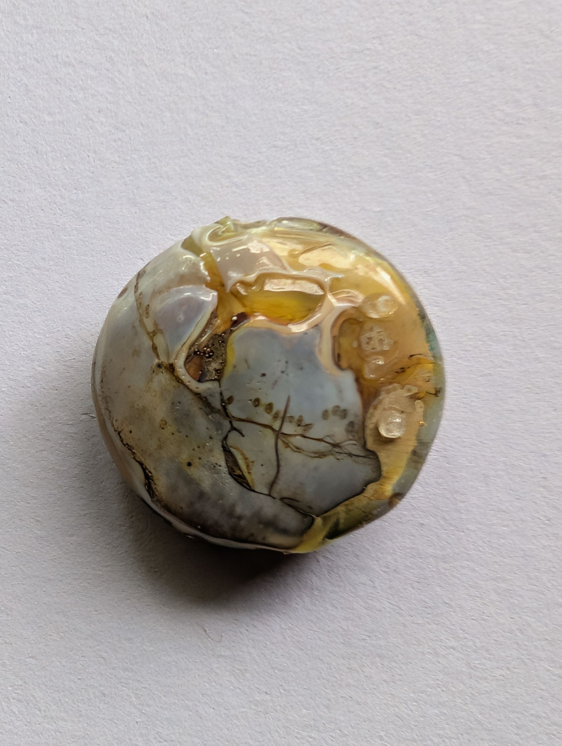 This was one of my first attempts at shards many years ago. I had to keep this bead as there was a slight crack but it is still one of my favourites. I like the black lines that appeared naturally on the shard, almost like a landscape.