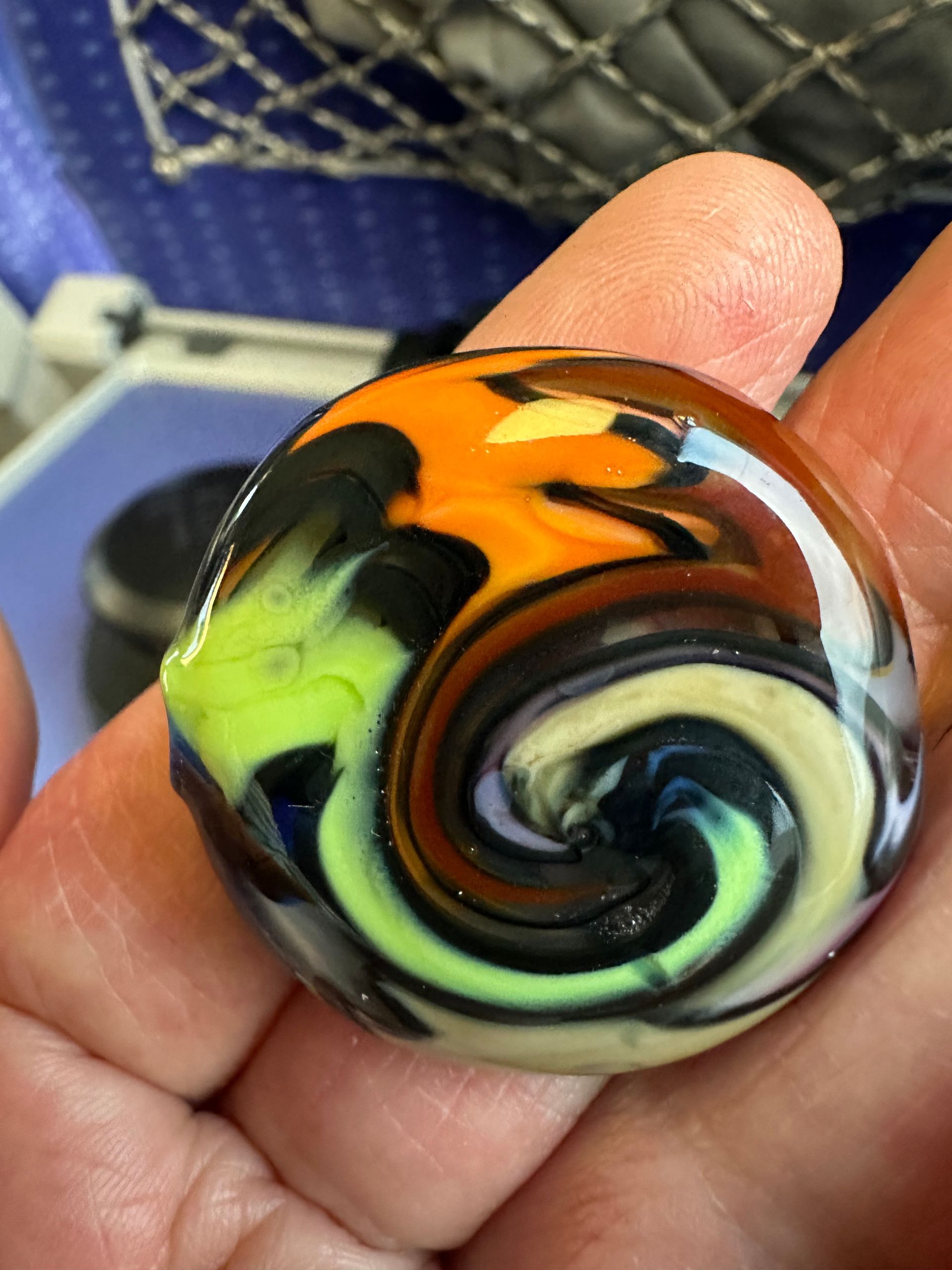 I started my lampwork journey in 2018. I mainly work with soft glass. I became interested in making murrinis not long after I passed my beginner's phase.