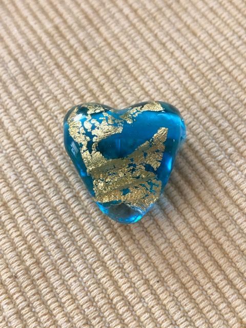 Shards are my nemesis! I find it hard to keep a shard from bunching up while melting. Finding the best background color is hard for me, too. I received some antique rose shards (Avenue Beads) as a gift and this was the most challenging color to find a good background for. This little gray heart is my favorite shard bead I made, but I couldn't replicate anything close. I love organic beads and color patterns.