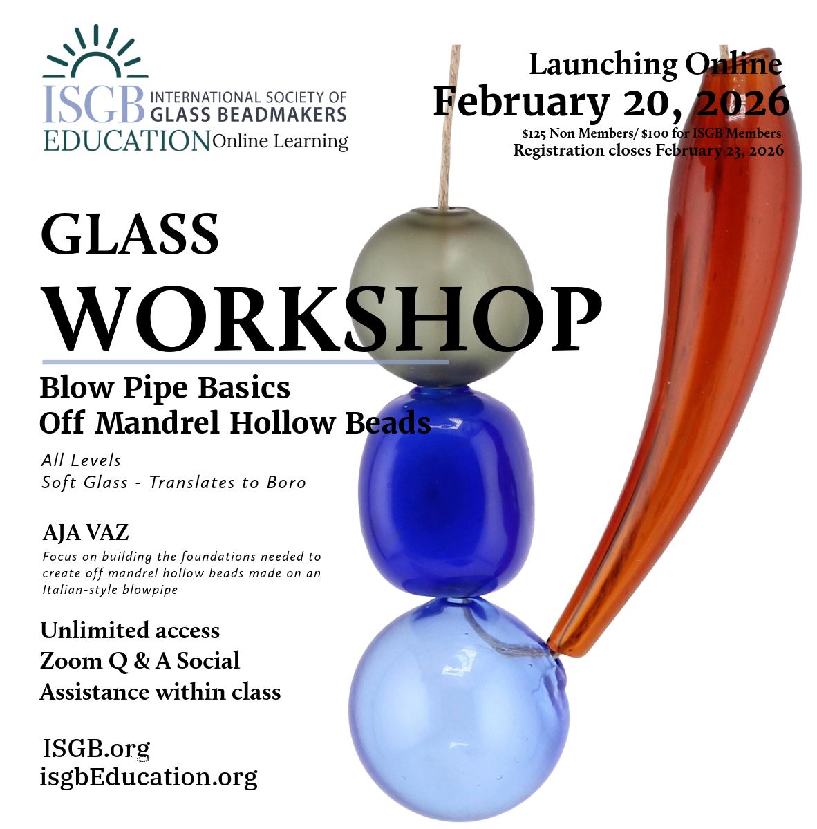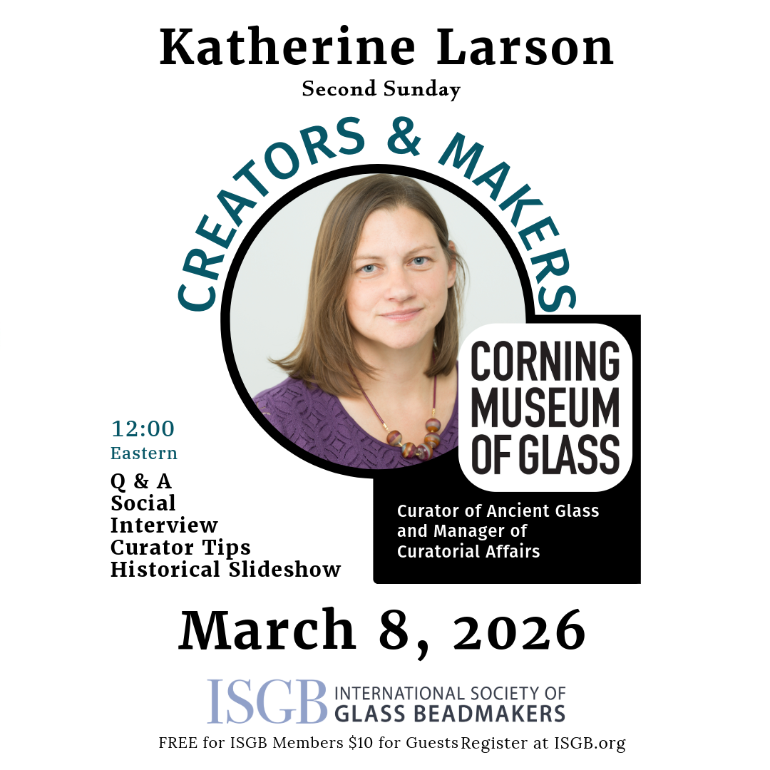 Your Bead for Venice is the international competition for beadmakers around the world who are inspired by the tradition of Venetian beadmaking. This is a collaboration between the ISGB, the Comitato per la Salvaguardia dell’Arte delle Perle di Vetro Veneziane and Perliers d'Art de France. From all the entries, 20 finalists were selected by a jury. All the finalists' beads will be on display from September 13th until January 6th 2026.